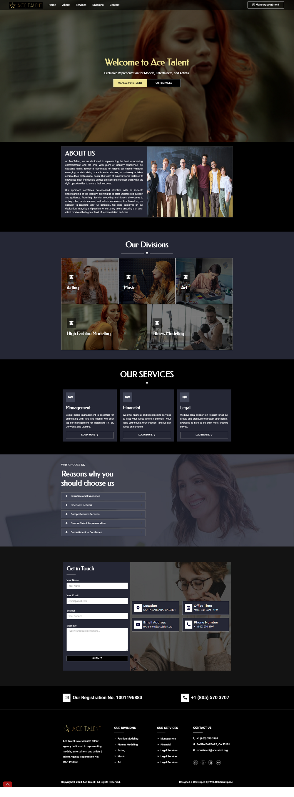As Ace Talent launched their new agency, they recognized the need for a strong online presence to effectively represent their diverse talent pool. A professionally designed website was essential for showcasing their services, engaging potential clients, and facilitating connections within the industry.